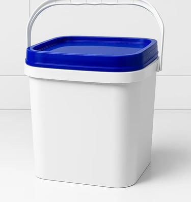 Industrial-strength bucket with ergonomic handle and secure locking ring.