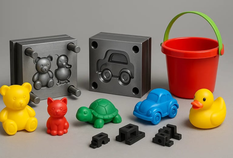 Child-safe toy moulds with smooth surface finish and zero flash edges.